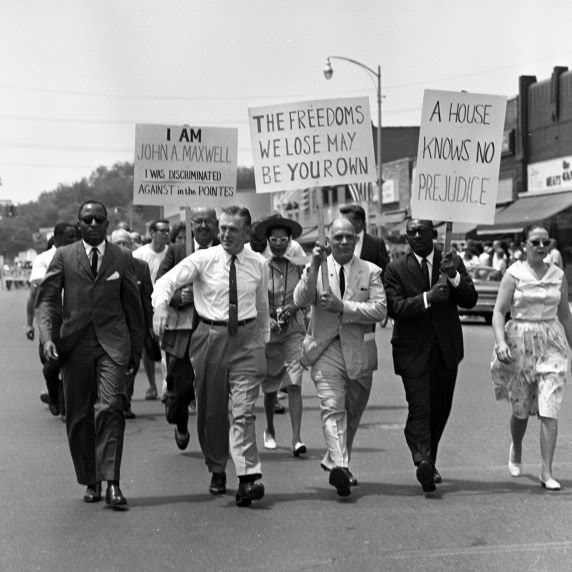 One of his key priorities as Governor was to address racial discrimination. He had been vocal about his position during the campaign and as Governor began fulfilling those promises. Just a few days after taking office he delivered his first State of the State address and declared that “Michigan’s most urgent human rights problem is racial discrimination—in housing, public accommodations, education, administration of justice, and employment.” He appointed an African American as the Vice-Chairman of the state’s Republican Party (the highest position in either party attained by a black person at that time) and would go on to help create the state’s first civil rights commission and appoint a black man as a special adviser on minority relations. He supported Martin Luther King Jr.’s June 1963 march on Detroit and shortly thereafter he himself marched along side black civil rights leaders protesting housing discrimination. ((See an excellent summary of Romney’s civil rights record in “Expanding the Frontiers of Civil Rights: Michigan, 1948-1968” By Sidney Fine books.google.com)).