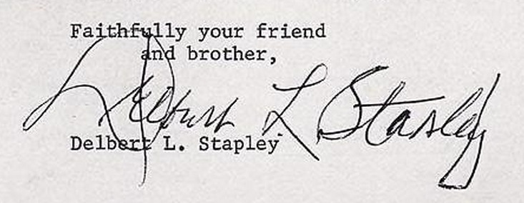 Just a few months after sending this letter to Romney, the Apostle Stapley addressed the body of the church in the April General Conference. His talk was on the subject of truth and the church. ((See his address in the April 1964 General Conference Report, archive.org)) He makes the case that in the essential quest for truth men cannot rely on the world of philosophy or science but only on the men at the head of the church. He quotes Joseph F. Smith in explaining that the leaders of the Church can be trusted because of their divine connection and their mission: