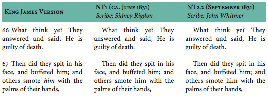 | King James Version | NT1 (ca. June 1831) Scribe: Sidney Rigdon | NT2.2 (Sept 1831) Scribe: John Whitmer |
